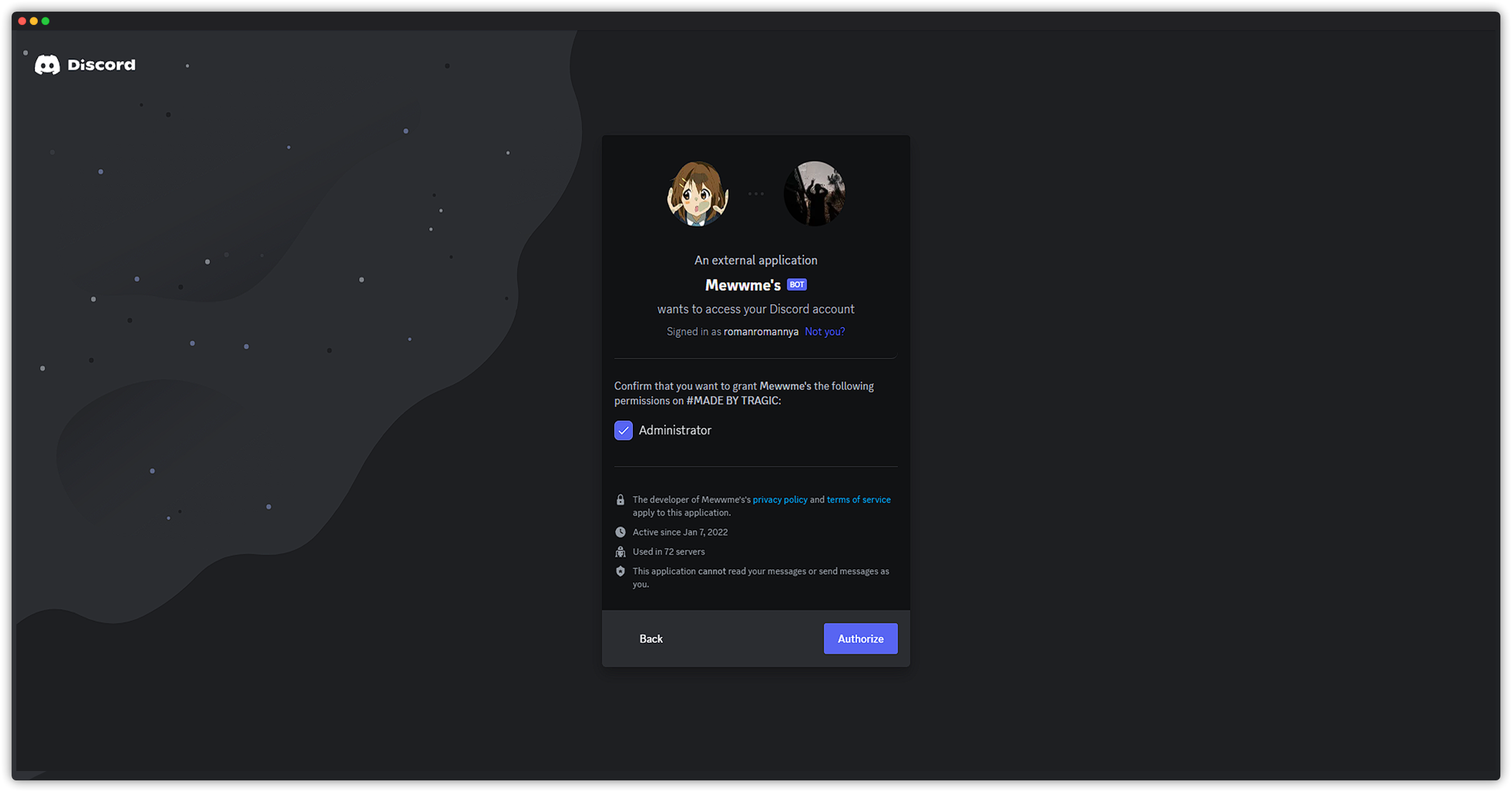 If you want to disable Administrator permission from Mewwme, it will not work properly! You will still be able to listen to basic music features but some things won't work.